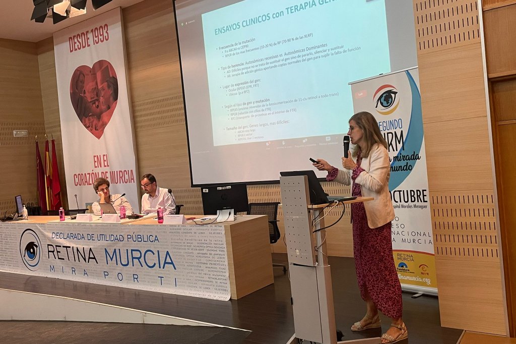 MURCIA, 09 OCTUBRE 2023 – “Les he contado mi pasado y, ahora, espero que la doctora Blanca García Sandoval les cuente mi futuro”. Así culminó su testimonio en el II Congreso Internacional Retina Murcia Enrique, un paciente con una Retinosis Pigmentaria en estado avanzado, ligada al cromosoma X en el gen RPGR. Es el mismo gen protagonista del ensayo clínico que encabeza como investigadora principal la doctora a la que interpeló el aún joven rockero y con la que compartió mesa en este evento anual, que se celebra en Murcia desde hace seis años. La doctora tomó el testigo y le empezó a contar a Enrique y a todos los asistentes un presente que ya es una realidad y un futuro con las puertas de la esperanza abiertas de par en par.